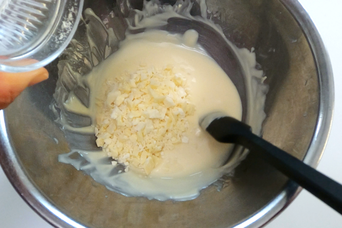 ・ホワイトチョコを2回に分けることで、テンパリングを省略して