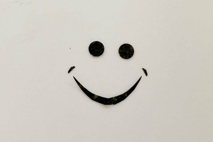 8.海苔で顔パーツを作り貼り付ける。