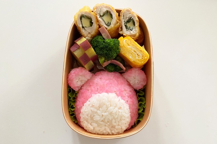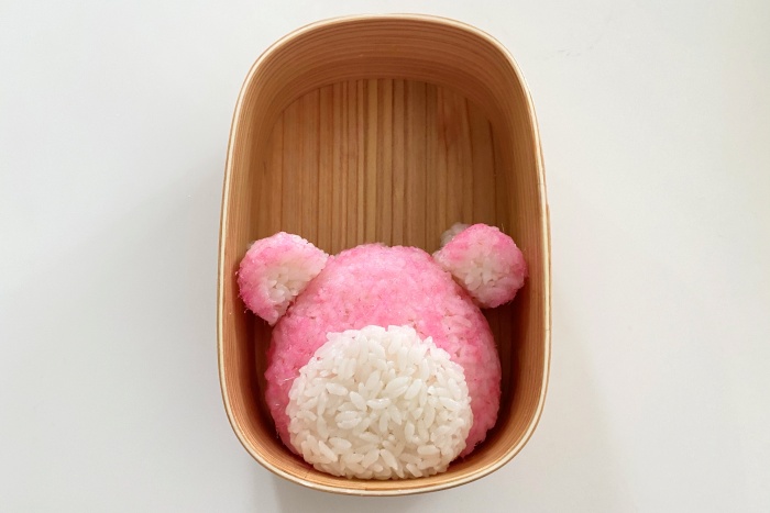3.2をお弁当箱に詰める。耳は乾燥パスタで顔に固定するとずれ難くなりますよ。