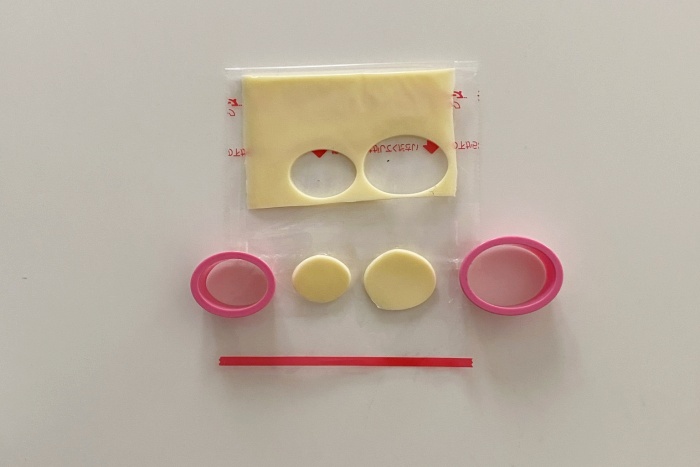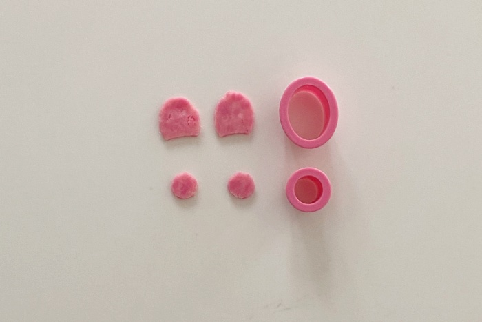8.ハムを楕円型と丸型で抜いて、耳と足の裏の部分を作ります。