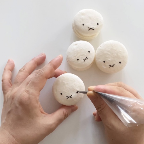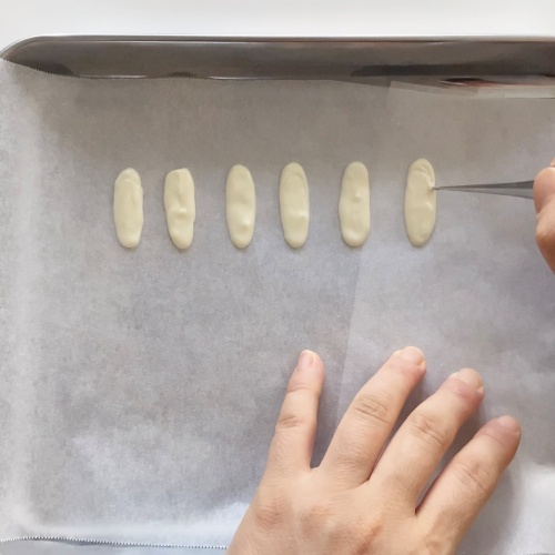 クッキングシートの上にチョコペンで耳を描いて。