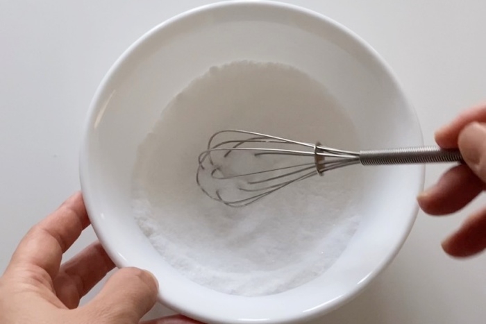 2.パールアガー、グラニュー糖をよく混ぜる。