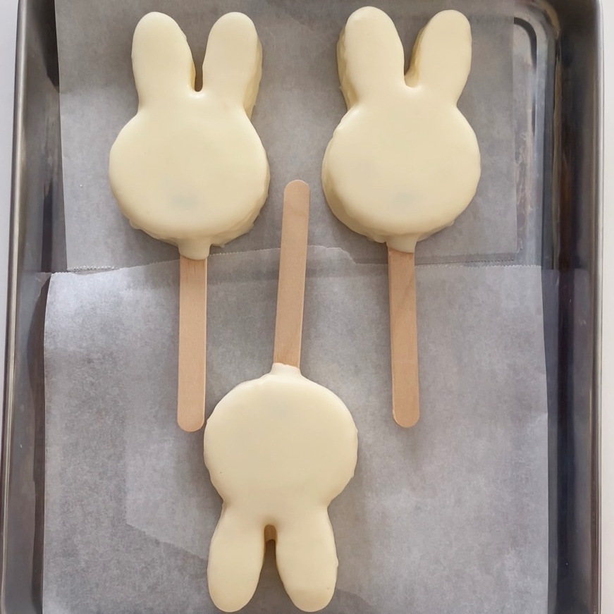 4.チョコをたっぷりとかけて、クッキングシートに並べます。
