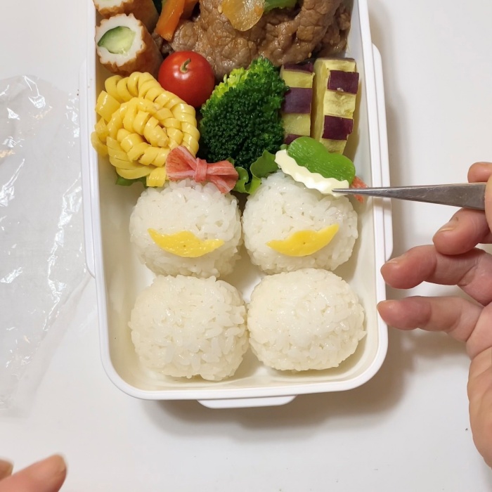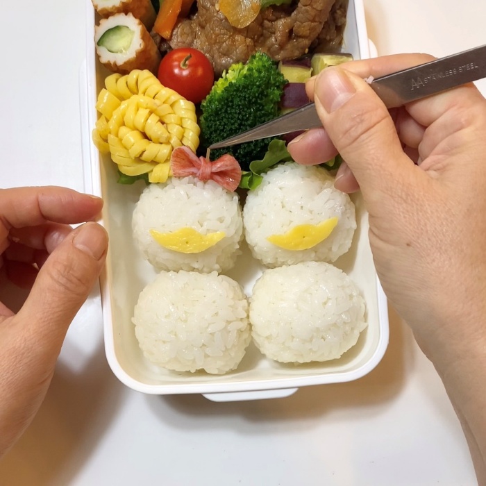 6.海苔で顔パーツを作り貼り付ける。