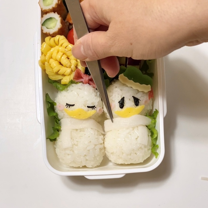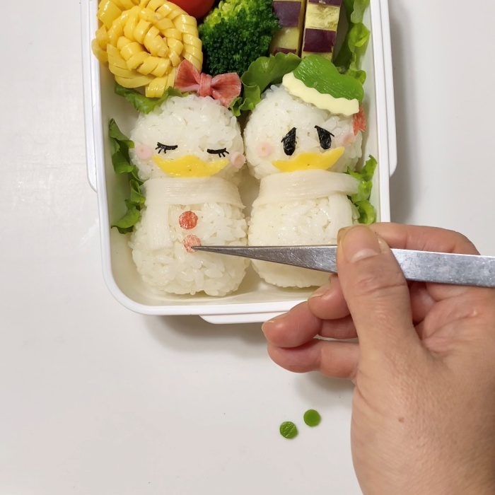 ドナルドとデイジーの雪だるま弁当を作りました♡