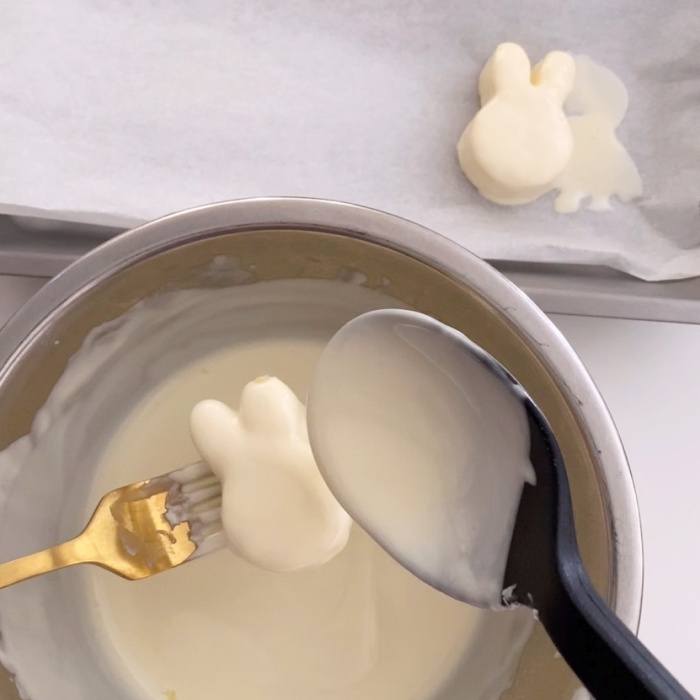 この時、きれいな面を上にしてチョコをかけると仕上がりもきれいです。