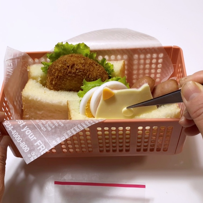 6.お弁当箱に詰め、スライスチーズを少し潰した太めのストローで