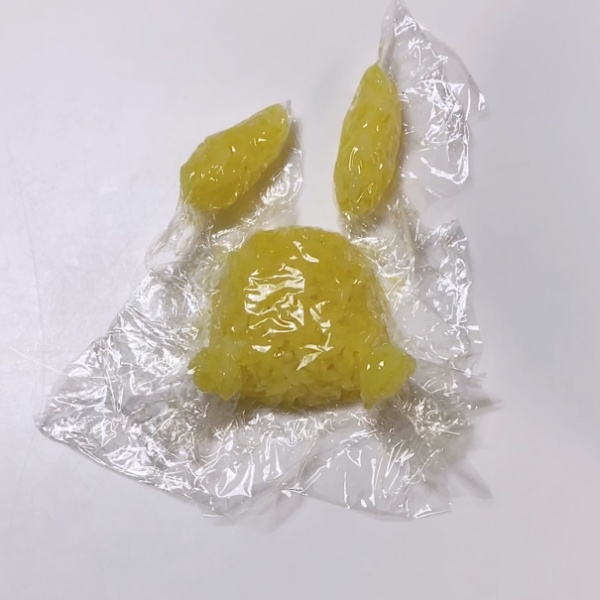 2.ピカチュウはごはんにデコふり(黄色)を混ぜラップに包み