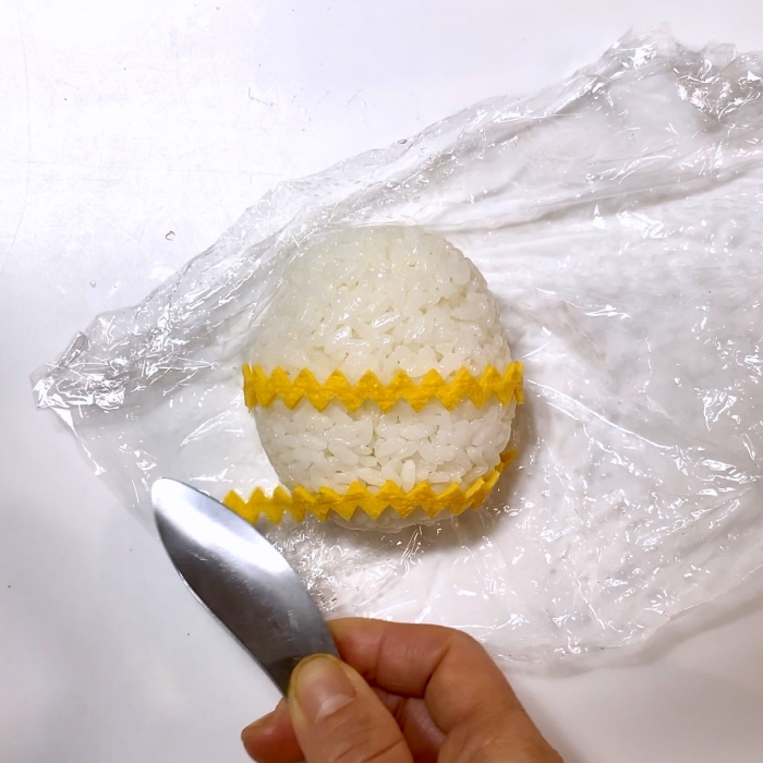 3.ごはんに2を巻き付けお弁当箱に詰める。