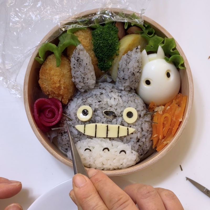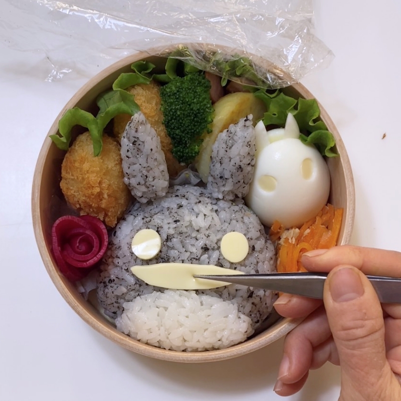 お顔アップのトトロ&ゆで卵の白トトロのお弁当です^^