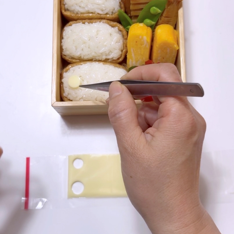 4.マヨネーズを少量付けて貼るか、乾燥パスタでとめると剥がれにくい。