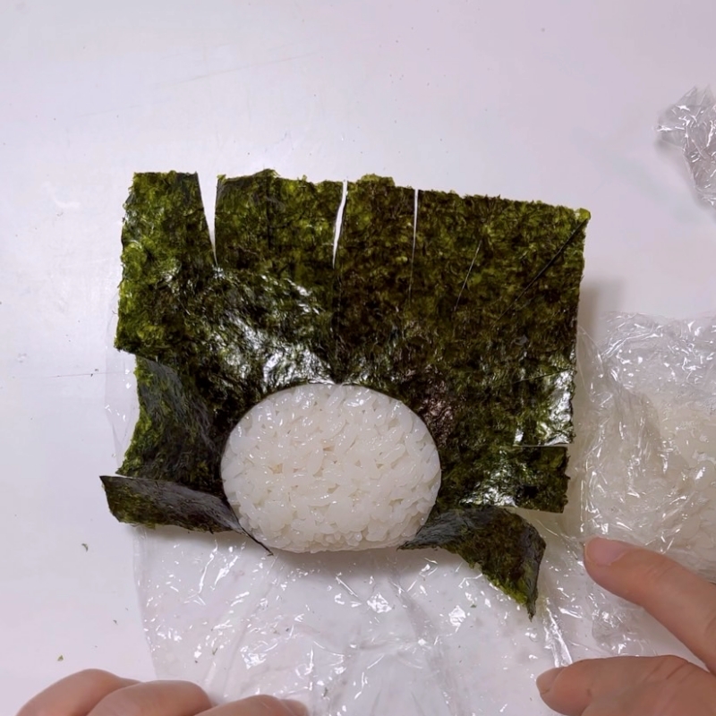 3.1のおにぎりがすっぽり包める程度の海苔を用意し、