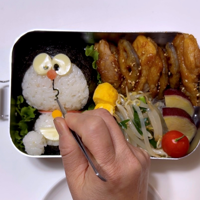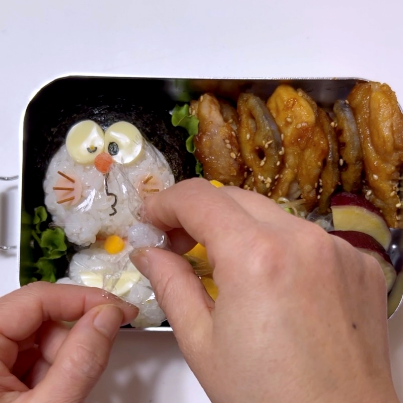 5.お弁当箱に詰めて顔と体を合せ、首の部分に