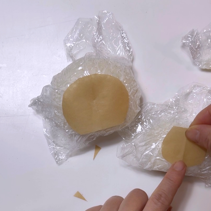 2.顔、体の白い部分の型紙をクッキングシートで作ります。