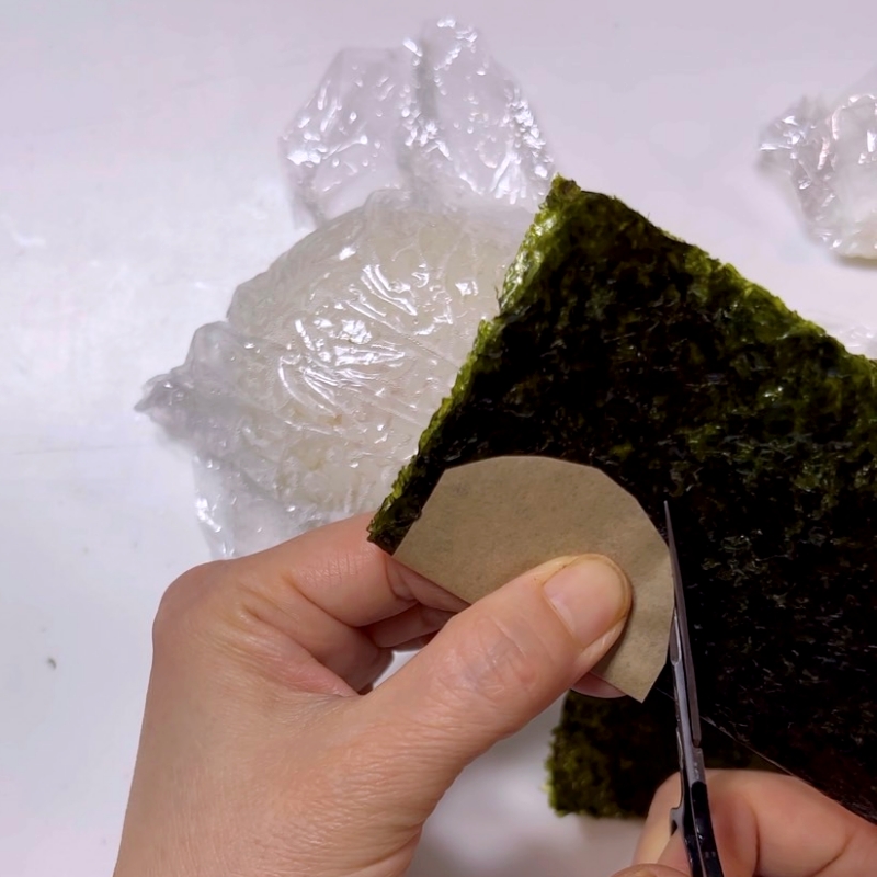 海苔で顔パーツを作り貼り付ける。
