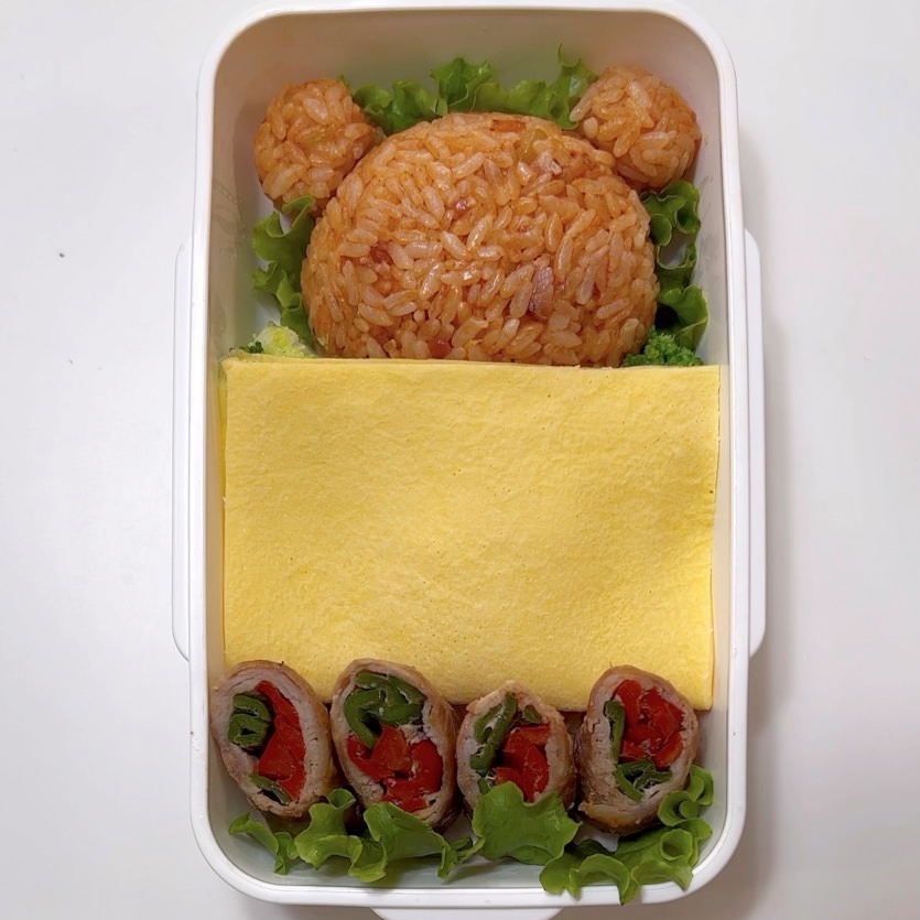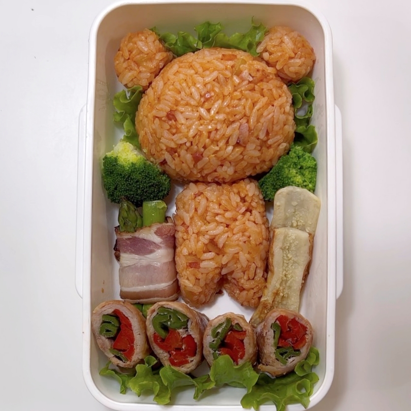 ベーコンと玉ねぎ入りのケチャップライスで作っています。