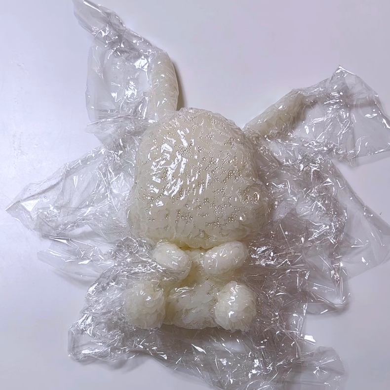 1.顔、体、耳×2、手×2、足×2をそれぞれラップに包んでにぎる。