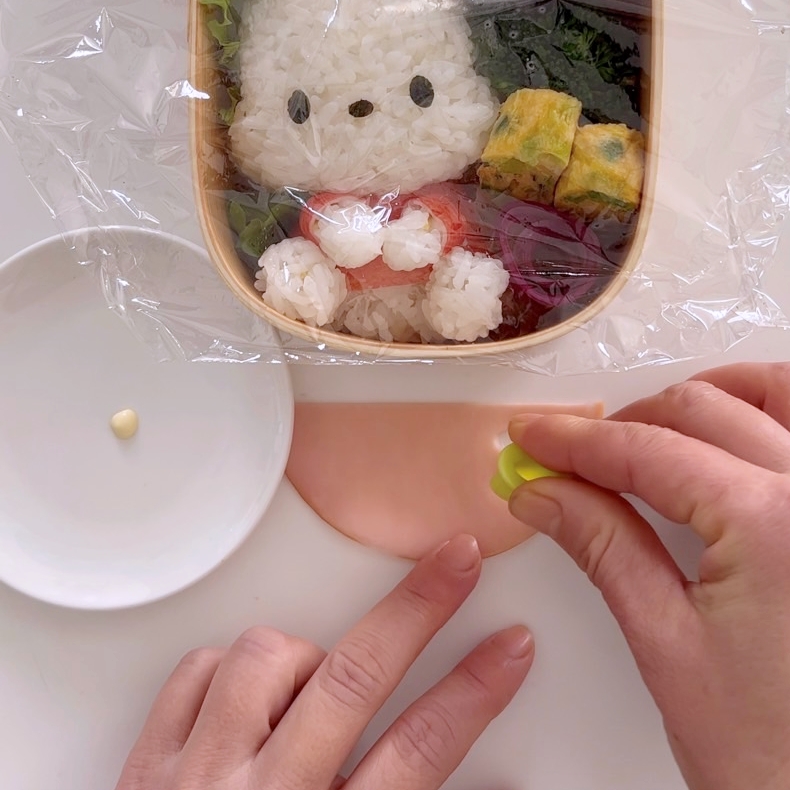 7.ハムを楕円型で抜き貼り付ける。