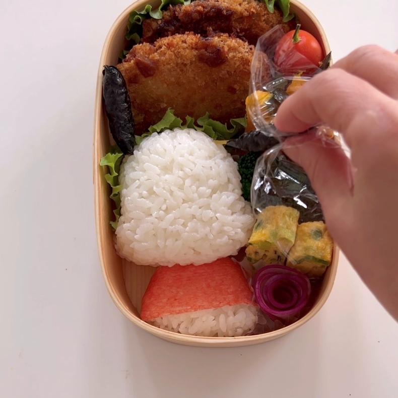 おかずを詰める。