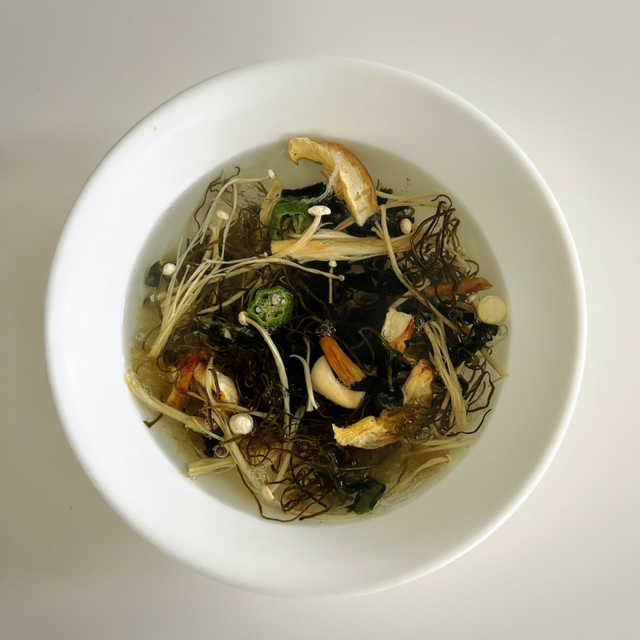 わかめ、昆布、とろろ、寒天、シロきくらげ、椎茸、めかぶ、