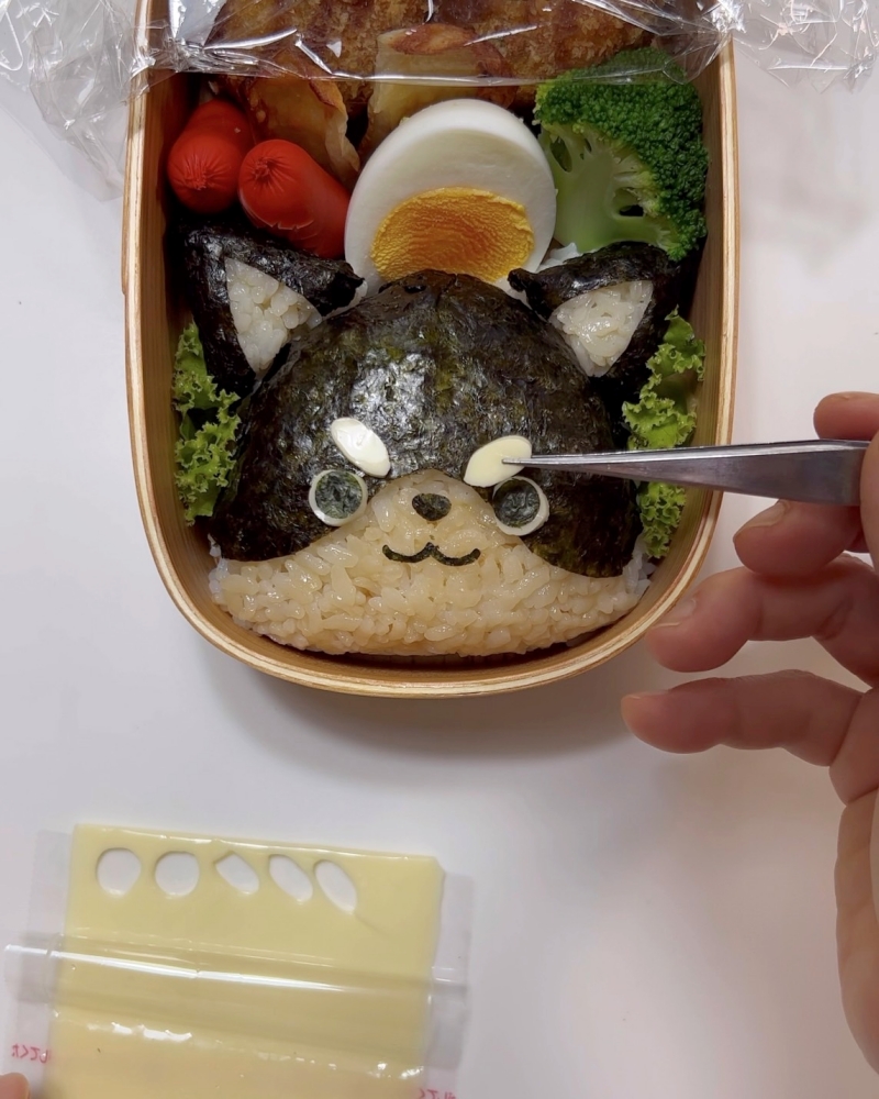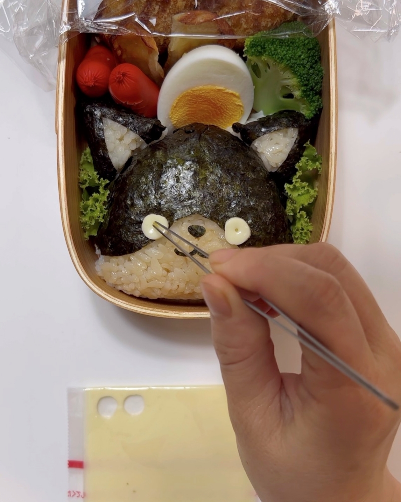 4.海苔で顔パーツを作り貼り付ける。