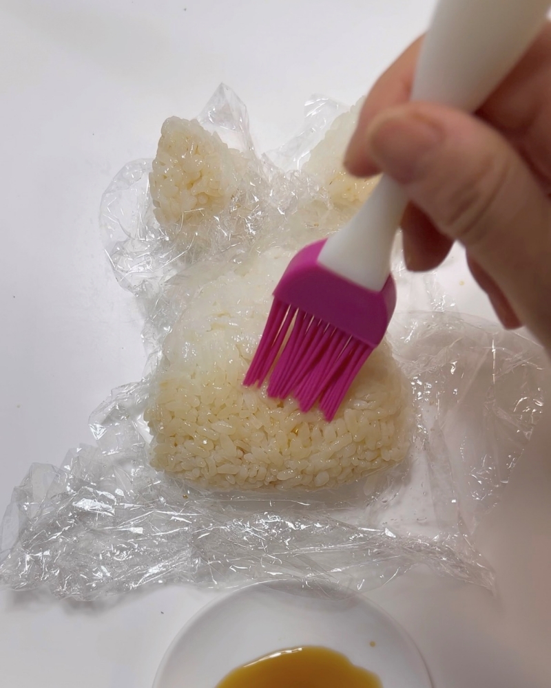 2.顔の下半分と耳に醤油を塗る。
