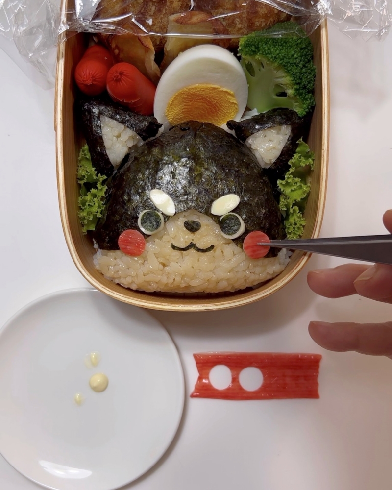海苔を貼るとモフモフ感がなくなるから難しいですね。