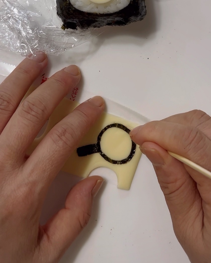 ポイは海苔で作り、スライスチーズに貼り周囲を竹串でなぞるように