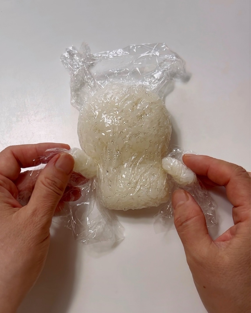 顔と体は一緒に握り、体は低めの台形にして安定感を。