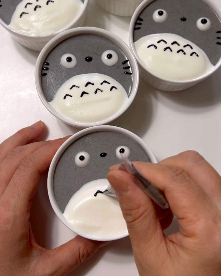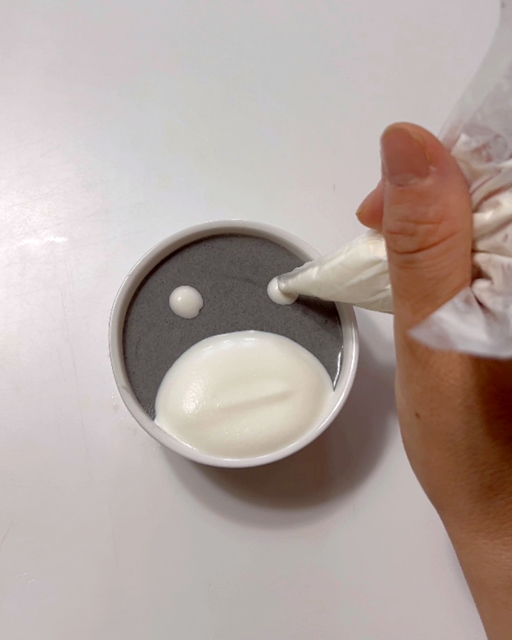 8.残った生クリームに竹炭パウダーを少量混ぜ絞り袋に入れて