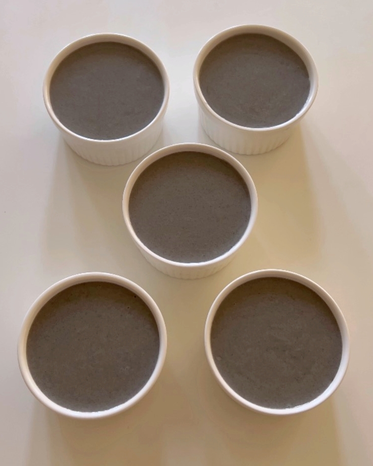 5.とろみが出たらカップに入れて冷蔵庫で固まるまで冷やす。