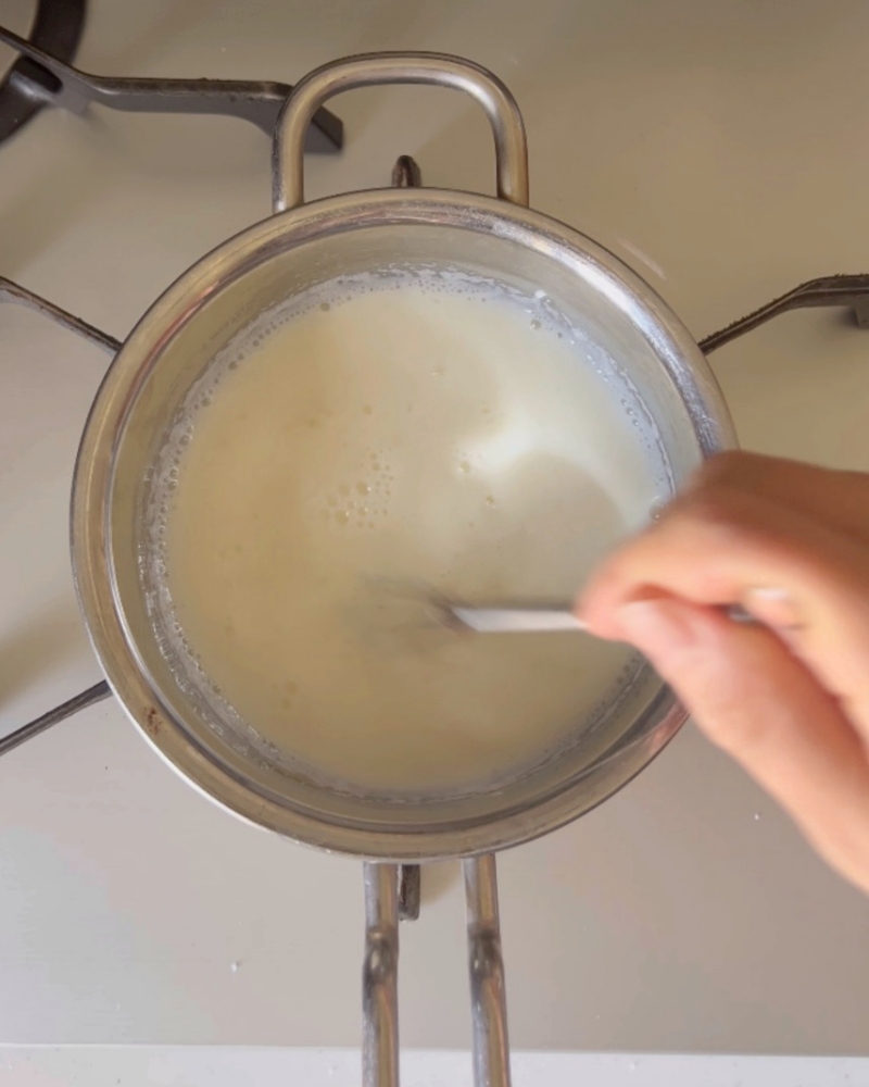 1.小鍋に牛乳を入れ沸騰直前まで温め、ゼラチン、砂糖を加えて