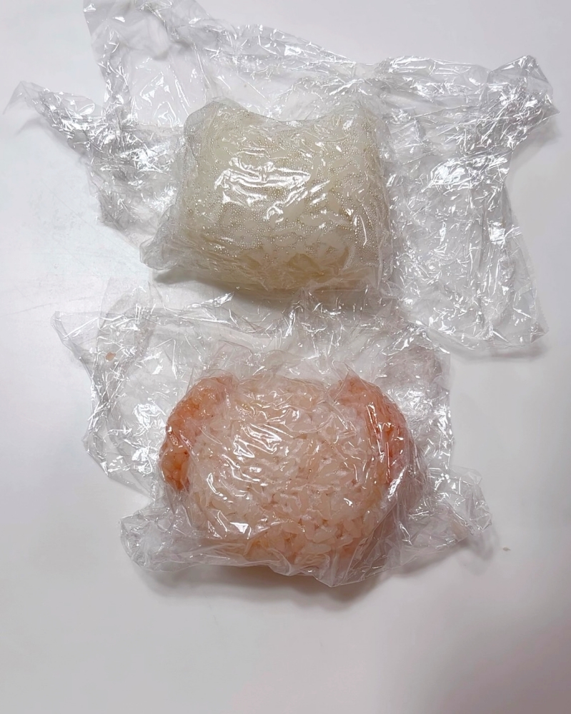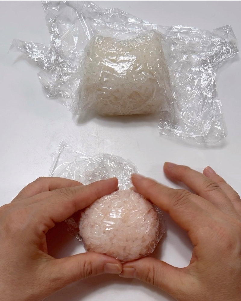 1.ねこは白ごはんで、ウーパールーパーはごはんにデコふりのピンクを少量混ぜて握る。