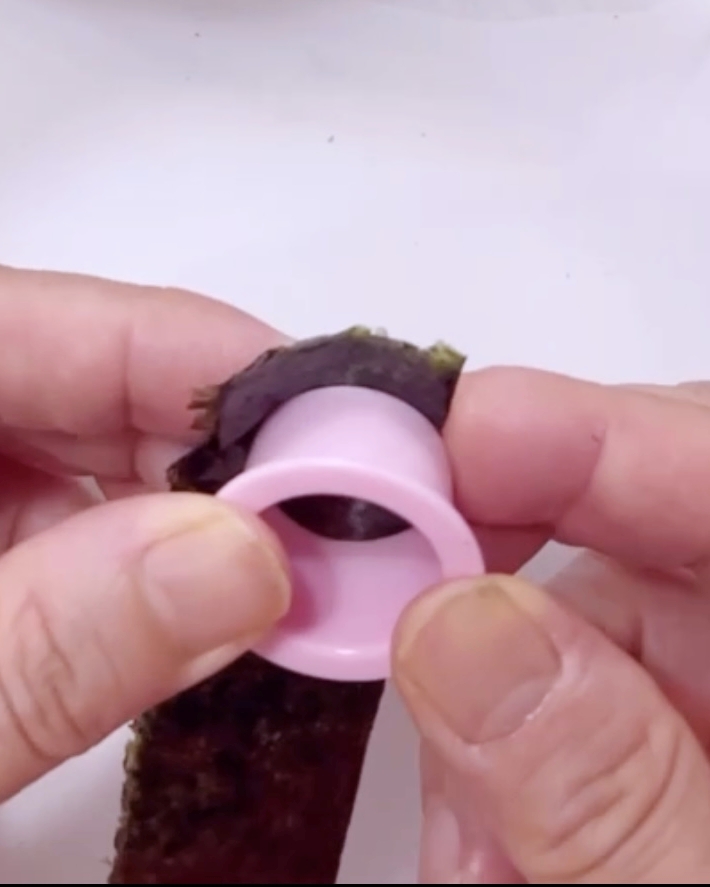 4.海苔を2つ折りにしてカットし貼り付ける。