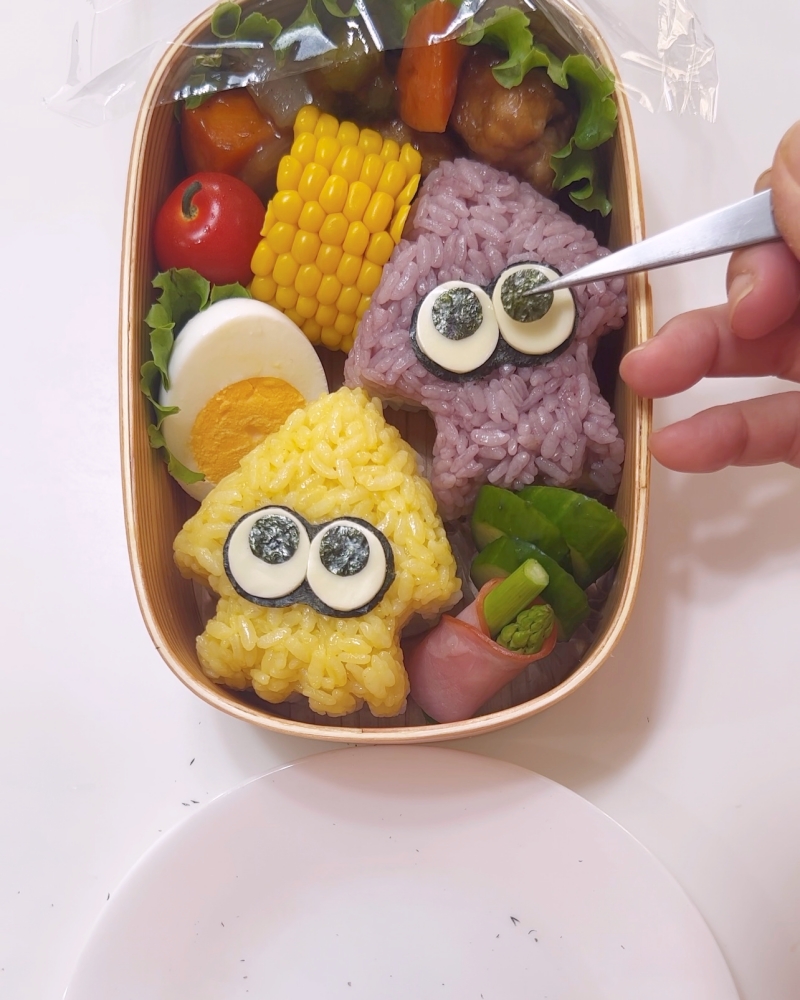 3.もう1つも同様に作りお弁当箱に詰める。足の部分がぼやけているようなら再度