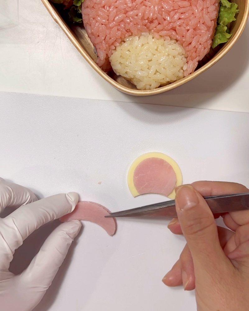 4.ハムを型で抜き、帽子のマーク部分とつばの部分を作る。