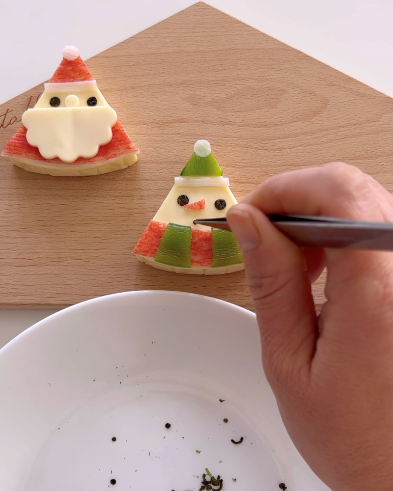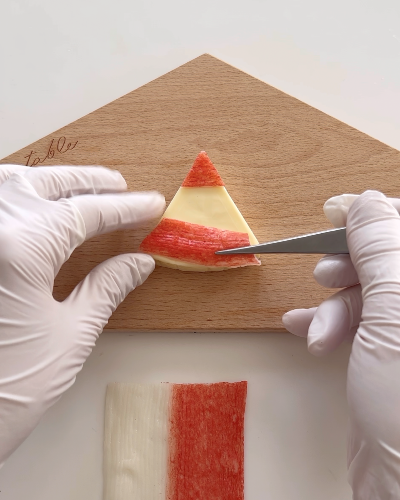 カニカマを三角形にカットし鼻を貼り付ける。