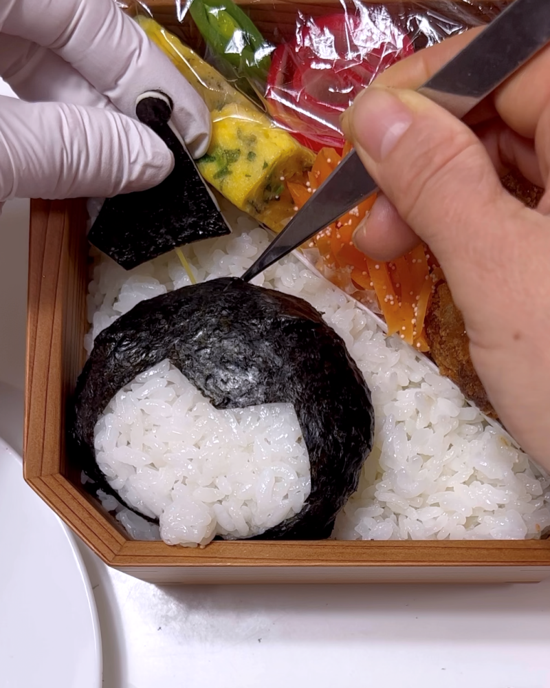 8.海苔で顔とドクロの顔を作り貼り付ける。