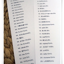 【追記・修正あり】感謝企画*エントリー確認♪ 2013-5-29 記事を読む おはようございます。読者登録1100名&つくれぽ7000突破!感謝企画24時で締め切らせて頂きました。沢山のご応募いただきありがとうございました。113名の方がエントリーして下さいました!!はじめましてさんも勇気を出してコメントして下さってうれしいです♪あたたか
