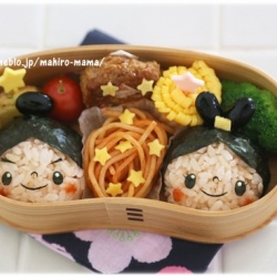 おにぎりくん*キャラ弁&プロフィール撮影会 2014-6-26 記事を読む おはようございます♪今日は幼稚園は誕生会の為、お弁当はお休み^^月に1度ゆっくり出来る朝でした。さて、先日作ったお弁当、三角おにぎりくんです^^小太郎のお弁当の残り物を使って、ちゃちゃっと作ったお弁当。このお弁当を持参して、フォトスタイリスト杉本有里子先