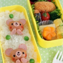 ニット帽&ミトンのあったかキッズのお弁当♪ 2012-2-15 記事を読む おはようございます。2月ももう半ばですね。冬っぽいお弁当、早く放出しておかないと~!と言う訳で、2週間ほど前に作ったキャラ弁です♪とっても寒くて雪の降りそうな日だったのでニット帽&ミトンでぬくぬくあったかい男の子のイメージです。今日は太郎の発表会。幼稚園